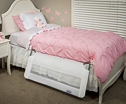 A mesh toddler rail is a toddler side rail that’s comfortable and soft for the child if they do end up wedged against it. There have been safety issues with bedrails that were attached to the bed, because kids could get wedged in the gap between the rail and the bed. That’s why the use of bed rails isn’t advised until kids can easily exit their bed on their own at age 2+. Safety 1st created a bed rail that fits over the mattress, instead of on the side of it. This type is even safe to use with baby. Some toddler beds, like those made by Ikea, come with their own removable bed rails.
