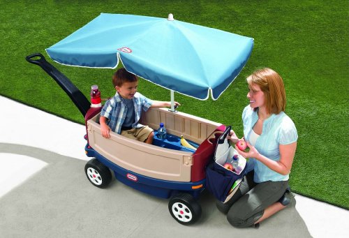 How sunny is it where you’ll be using your wagon? Do you require a wagon with a canopy? Some kids wagons come with a canopy included, for others it’s optional and sometimes there’s also a universal canopy or large umbrella available that fits (such as the Sport-Brella Versa-Brella). If you want a canopy, it’s usually cheapest to get a wagon with canopy included. You can either get a folding wagon with canopy or a plastic wagon with canopy. For the metal and wooden carts canopies aren’t usually available, but you can see if you can fit the universal canopy. For some models, such as the Radio Flyer EZ Fold Wagon, it’s extremely easy to remove the canopy if you don’t want to use it or for storage. Check the kids wagon reviews below to see if this is also the case for the model you’re looking at.