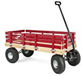 If you have a large car and prefer a collapsible beach wagon with air tires, you could consider the Amish made Berlin Flyer Sport Wagon or the Radio Flyer Beach Wagon. These look a lot more like the traditional kids wagons many of us remember from our youth. For both these wooden wagons for kids, the side boards are removable for easy transport, but they’re much larger than a fold up beach wagon like the MAC Sports wagon.